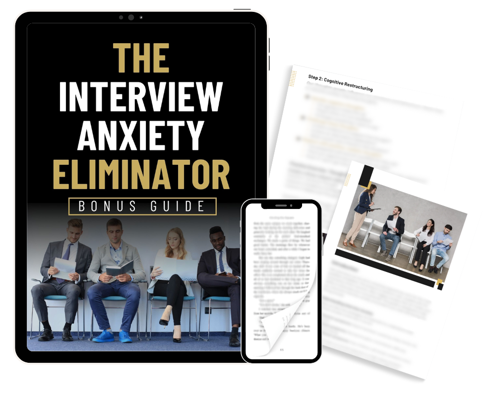 PLUS: 5 FREE BONUSES (Worth $184) including "The Interview Anxiety Eliminator" and "Thriving on Stage with Anxiety" that turn career-killing fear into promotion-worthy presence!