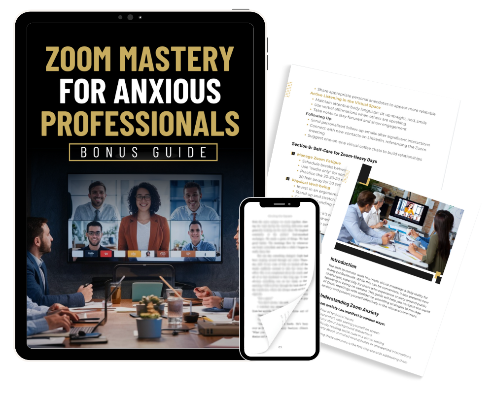 Conquer your fear of virtual presentations and meetings. Learn how to set up your space for maximum confidence, manage technical issues without panic, and use Zoom features to your advantage. Includes tips for maintaining eye contact, handling awkward silences, and projecting confidence through the screen.
